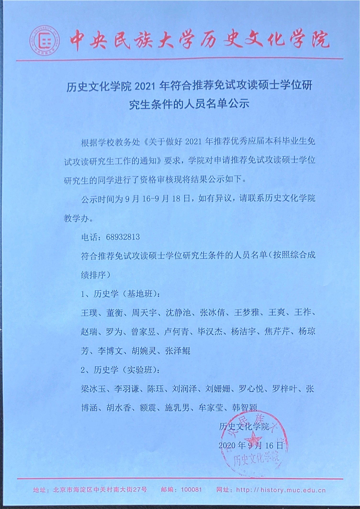 网络博彩平台 2021年符合推荐免试攻读硕士学位研究生条件的人员名单公示