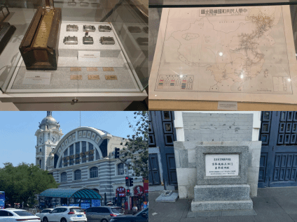 第五小组学生围绕“北京与中国近代铁路”主题开展毕业实习。第一天,小组成员通过系统研读《北京历史地图集》《京奉铁路研究》《日本车站史》等文献,重点关注京张铁路的自主建设与其在“自强”思潮中的象征意义,初步理解了北京作为铁路枢纽的历史演变。6月24日,第五小组集体前往中国铁道博物馆正阳门馆实地调研,参观京张与京奉铁路展区,获取了大量实物资料,如早期车票、通信设备和列车模型,加深了对文本内容的感性认知。通过“文献—实地”的结合,小组成员认识到铁路作为交通工程的同时,也是近代中国政治、经济与城市结构变迁的重要媒介。