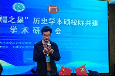 副院长白林致开幕词,白院长指出,历史学有着传承文化的重要使命,史学研究应加强学术交流与互鉴。本次研讨会旨在为两校师生搭建学术交流平台,希望各位同学广泛交流、取长补短,不断成长为日后闪耀光芒的“北疆之星”。