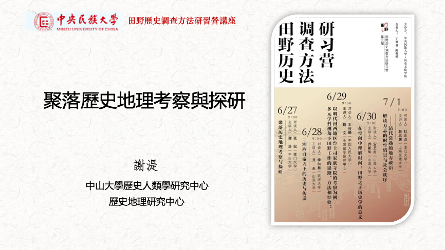 “第三届田野历史调查方法研习营”第一场讲座通过线上平台“腾讯会议”顺利举行。本次讲座由中山大学谢湜老师主讲,由厦门大学张侃老师担任主持人和对谈人,讲座主题为“聚落历史地理考察与探研”。