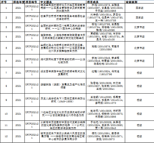 2021年第二批大学生创新训练项目结项定级
