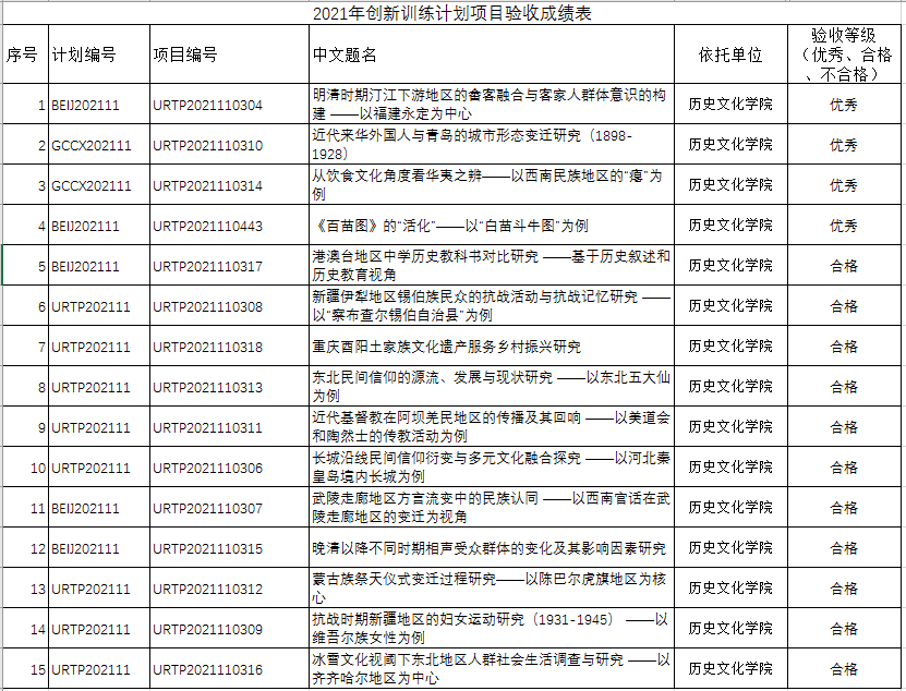 2021年大学生创新项目第一批结项成绩公示