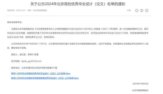 根据北京市教育委员会高等教育处《关于公示2024年北京高校优秀毕业设计(论文)名单的通知》,网络博彩平台