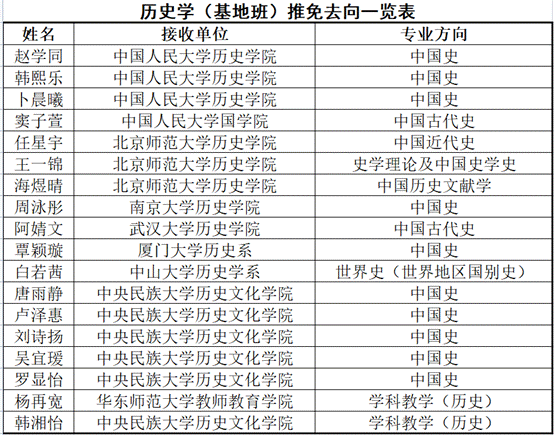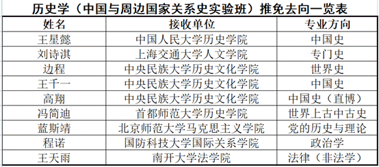 2022年9月,学校启动2023年优秀应届本科毕业生推荐免试攻读硕士学位研究生工作,在线赌博平台 2019级历史学基地班、中国与周边国家关系史实验班共27名同学获得保研资格,已为中国人民大学、北京师范大学、南京大学、南开大学、武汉大学、中央民族大学等高校接收。