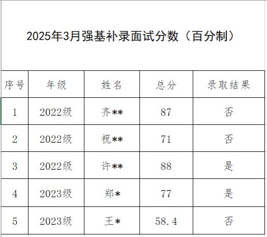 依据《网络博彩平台 强基计划本科阶段动态调整实施办法 修改版第3版》中有关补录的相关规定,在线赌博平台 于3月11日完成了补录材料审核及面试工作。经学生自愿报名,工作小组审核材料,面试小组对申请学生进行面试,最终面试成绩及录取结果如下: