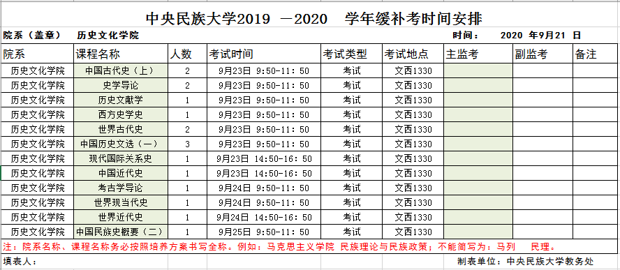 2019-2020学年缓补考试安排