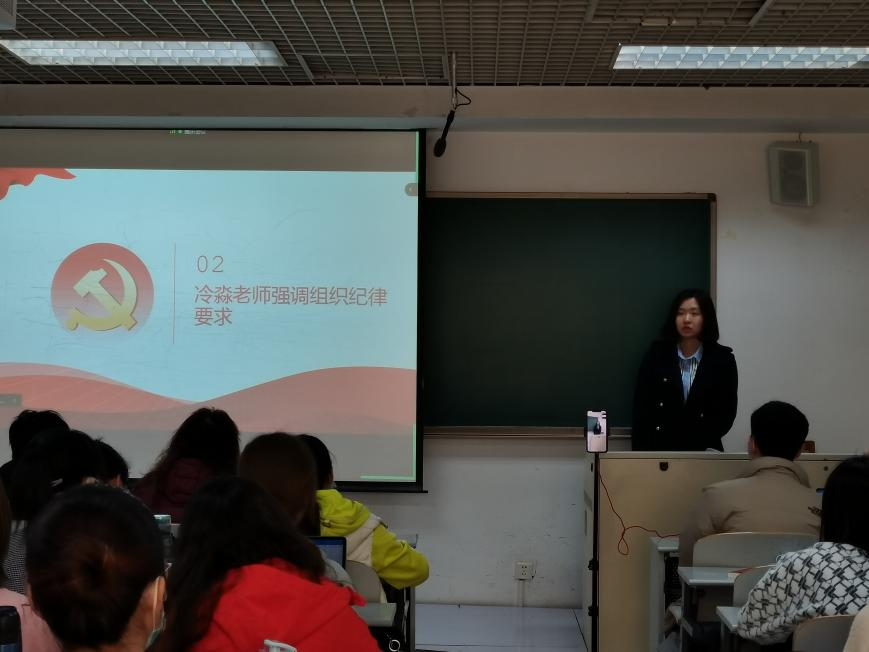 无论是教师党员还是学生党员,在日常生活中都展现着优秀共产党员的责任与担当。最后,她鼓励同学们积极向党组织靠拢,努力向身边的优秀党员学习,发扬高尚的精神品格,践行无私奉献、乐于助人的光荣精神。