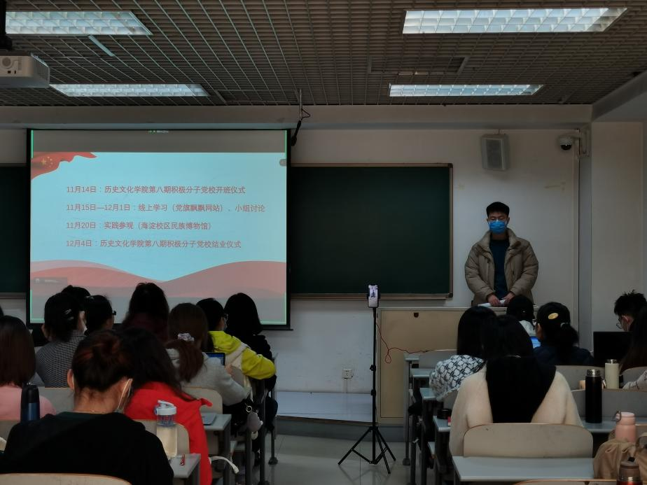 党委于2021年11月14日上午,在海淀校区文东1106教室举行了本学期入党积极分子培训班开班仪式,丰台校区采用同步直播的形式线上参与。