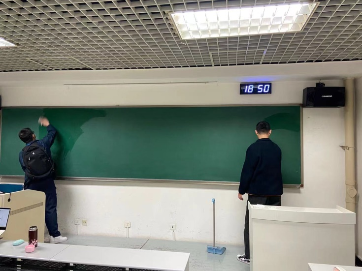支部成员们按照预先分组,有计划地对文华楼十一层1103、1104、1105、1106等教室进行卫生清洁工作,在活动中各位同志一丝不苟,认真细致,圆满完成了此次“扫除流感”主题党日活动,为同学们营造了一个舒适、整洁的学习环境。