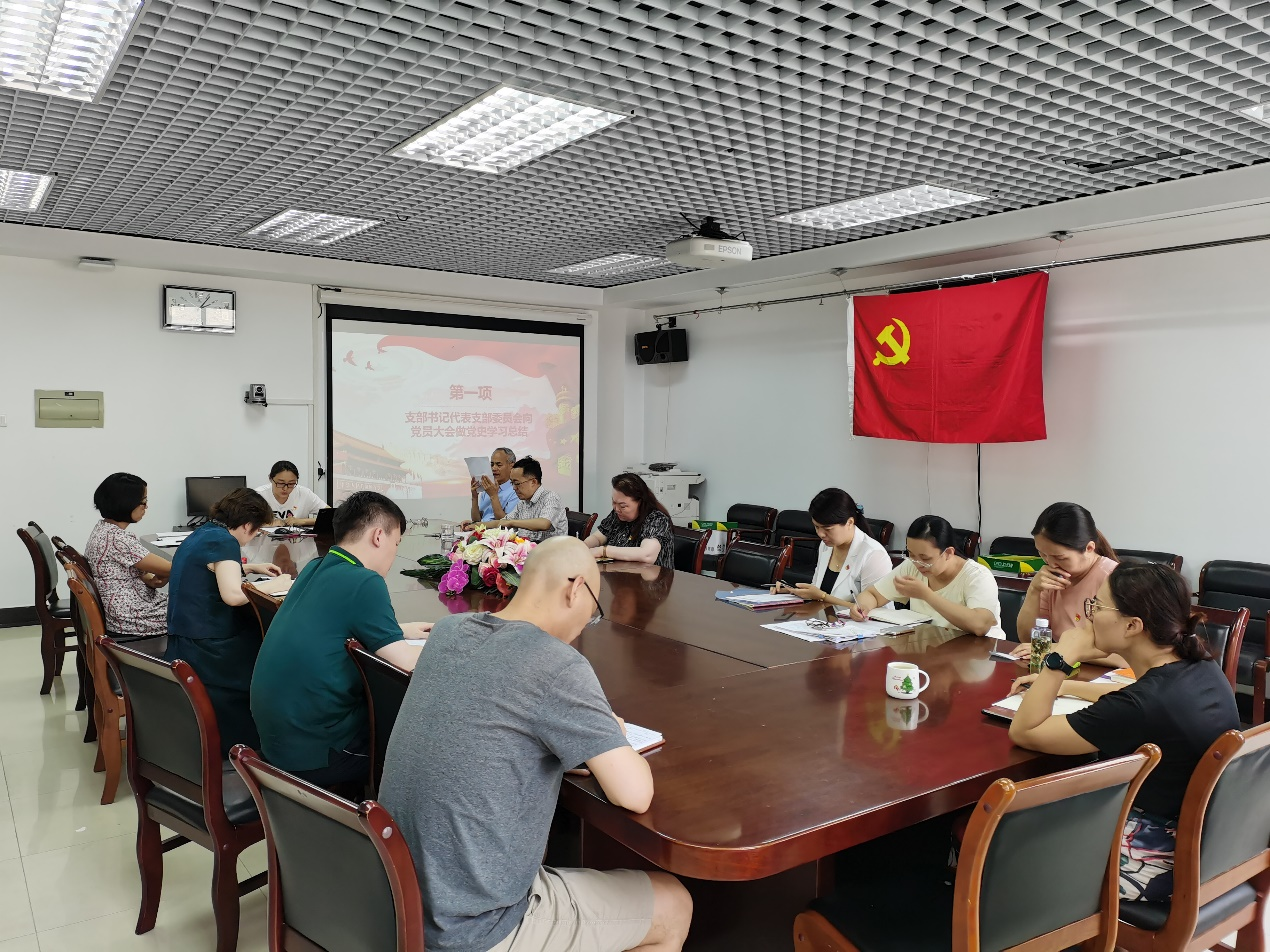 首先,胡晔书记代表支部委员会向党员教师做党史学习教育总结。她从深入开展主题学习、灵活举行支部活动、积极开展对外交流活动、加强支部队伍建设、做好日常管理工作等六个方面总结了支部上半年围绕党史学习教育开展的各项工作,并检视了工作的不足,指出支部应加强对外的交流学习、加强理论学习和成果转化。