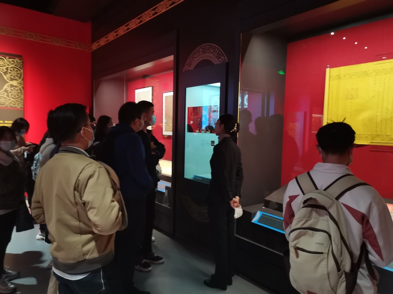 在参观展览的过程中,同学们十分珍惜本次学习机会,在认真观看陈列、听取讲解的同时结合自身在思想政治课程学习与历史学专业学习中的收获与心得,对展览内容展开积极讨论,在欣赏各民族前辈所留下智慧结晶的同时理解领会铸牢中华民族共同体意识的重大意义。