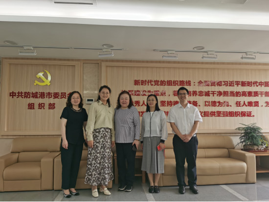 党委副书记魏延梅、团委书记范钰婧前往防城港市委组织部看望向禹,并于单位领导展开座谈。座谈中,科室负责人车冰蕊首先对向禹适应能力强、学习能力强、工作能力强、谦虚低调、吃苦耐劳的优秀品质提出赞扬,接下来,车冰蕊详细介绍了防城港市的基本情况、选调生人数及性别、民族占比,以及防城港市在职位晋升、生活待遇方面给予人才的高度重视和关爱,突出了防城港市委组织部重培养、重感情的工作特色。在人才培养需求方面,她建议学院能够通过党团支部活动等方式加强学生国家安全意识和保密意识,提高学生纪律性和警惕性,同时希望学院多向毕业生宣传推荐防城港,欢迎学院继续向防城港输送优秀人才。