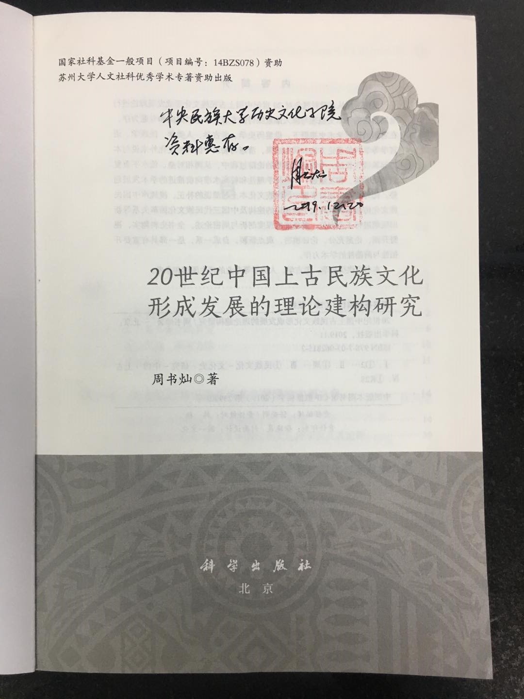近日,苏州大学社会学院周书灿教授向在线赌博平台 资料室赠送个人专著《20世纪中国上古民族文化形成发展的理论建构研究》。