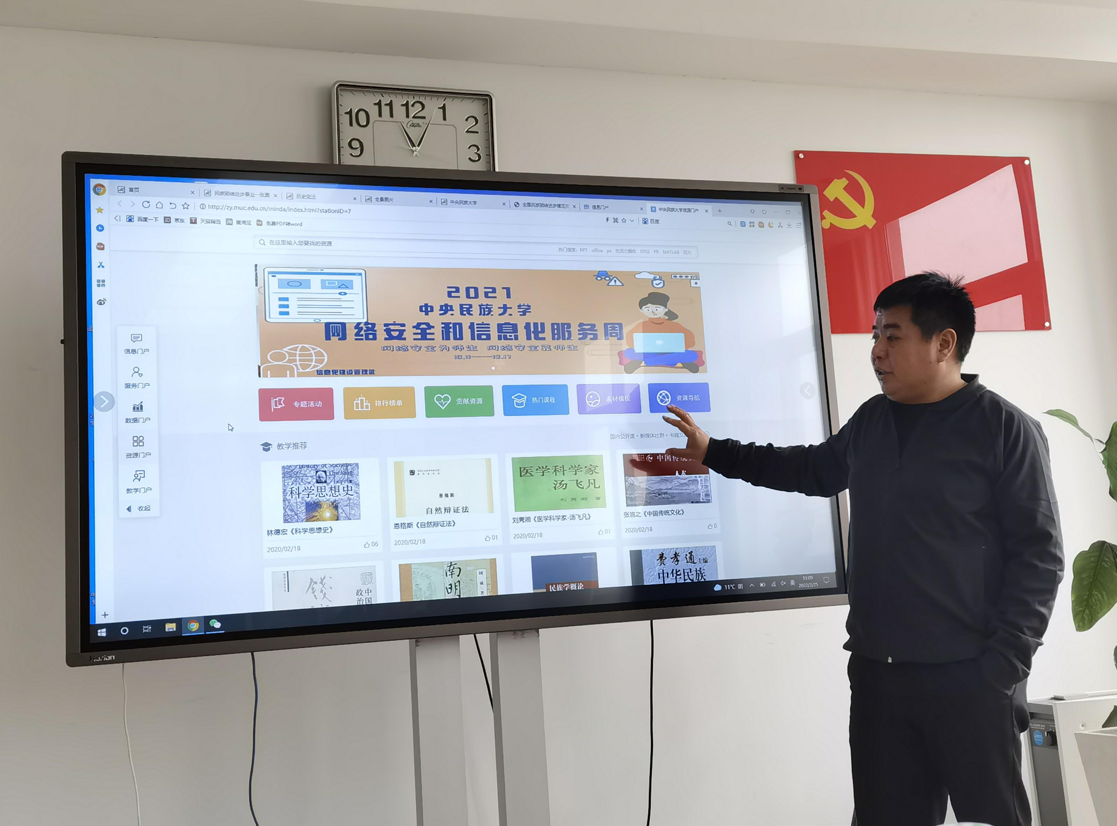 信息化建设管理处马传连处长介绍了近年来通过信息化建设服务保障教学科研工作的典型案例,现场演示了民族事业发展数字资源库、资源门户教学数字资源库。他表示,信息化建设管理处将全力保障中华民族交往交流交融史数据库中心建设,在网站开通、网站迁移、硬件支持、网络资源分配、数字教学资源建设等方面提供支持,并对做好数据库前期规划提出具体的意见建议。