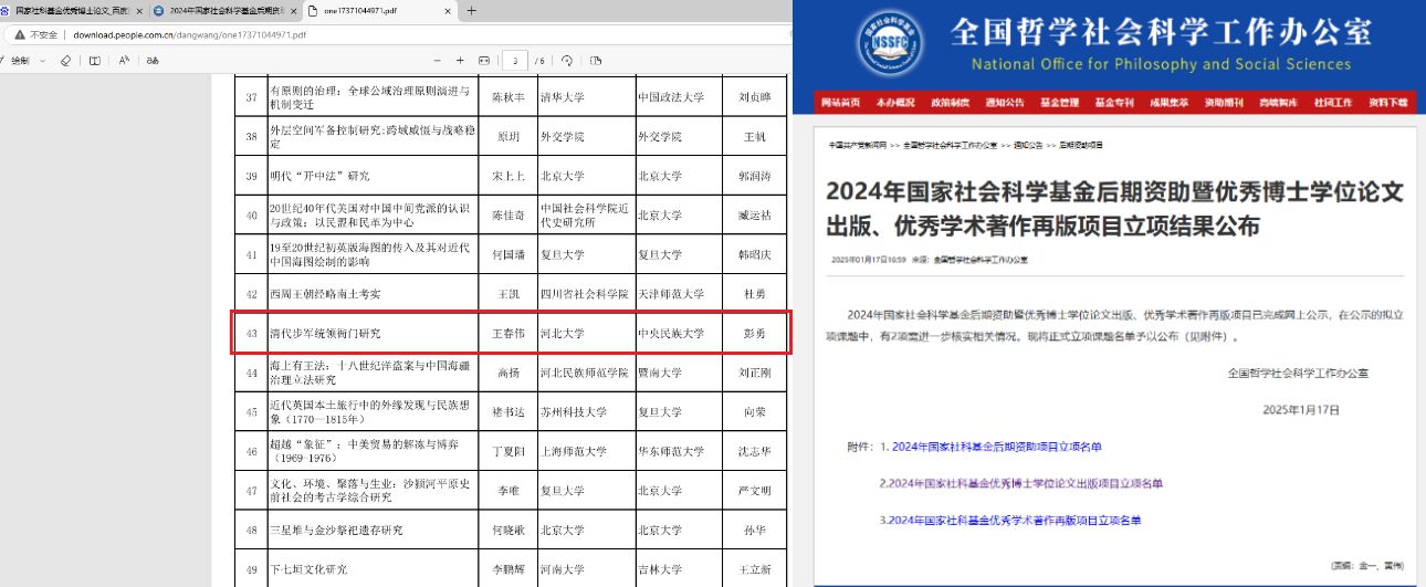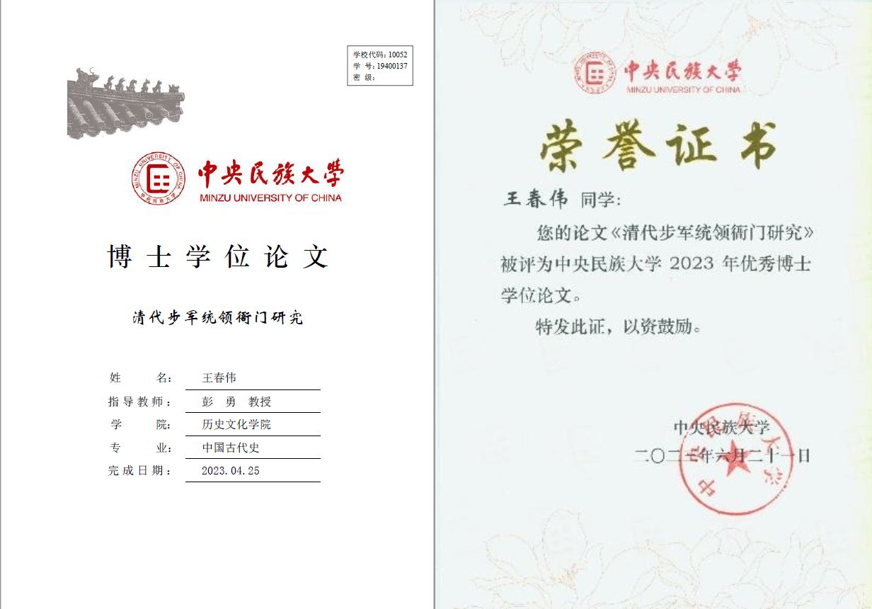 彭勇教授指导的2023届中国史(明清史方向)博士毕业生王春伟喜获立项。