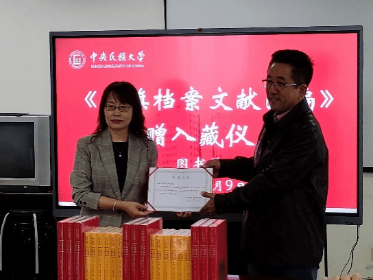 哈斯巴根教授捐赠《八旗档案文献汇编》。的入藏仪式在中央民族大学图书馆举行。网络博彩平台