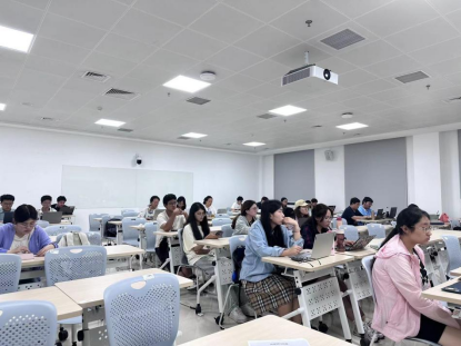 讲师陈林博老师。讲座以线上线下结合的方式开展,校内师生共有百余人参加。