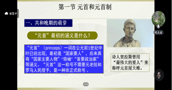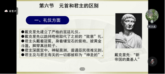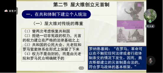 副教授王遥老师担任主持人,以线上讲座的形式,为大家揭示了古罗马元首制度形成与发展的历史奥秘。