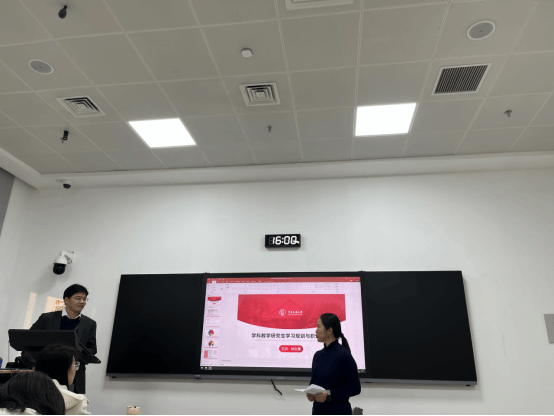 钟教授接着分析了学科教学专业的学习特点:时间紧任务重。钟教授针对不同时期给予学生们建议,如尽快适应研究生生活,及早确定发展目标,做好学习和职业发展规划。如想要成为一名合格的教师,需要考取教师资格证,锻炼自己的教学技能,做好实习实践,同时提升朗诵、书法等基本职业素养。
