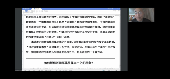 李鸿宾教授以腾讯会议的形式举办了题为《唐后期河朔节镇员属本地化现象说明了什么?——背后意涵的方法论诉求》的学术讲座,本次讲座是网络博彩平台