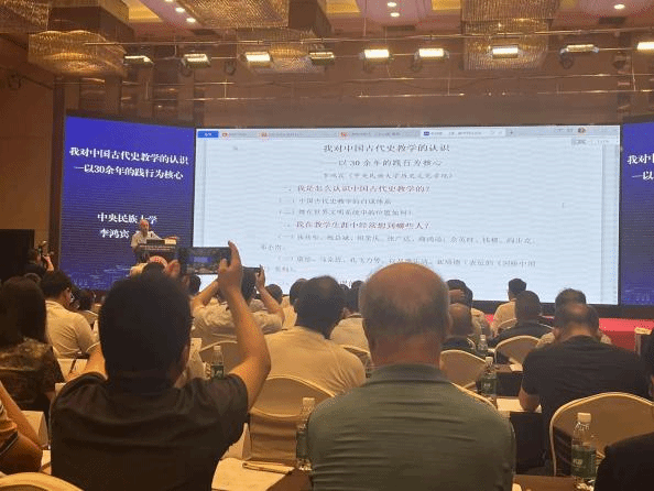 李鸿宾教授应邀在大会上做主旨报告,题目为《我对中国古代史教学的认识——以30余年的践行为核心》。报告中,李老师主要从“我是怎么认识中国古代史教学的”“我在教学生涯中经常想到哪些人”,以及“我是如何讲课的”等方面,介绍了他从教三十余年的体会和经验,赢得与会学者的阵阵掌声。