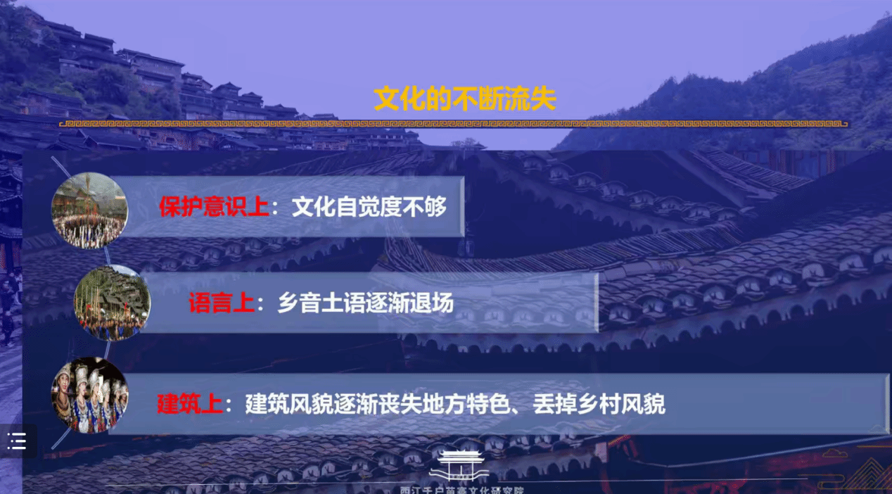 本次讲座主要分为四个大部分:西江研究院与苗寨简介;旅游开发前后的西江;西江模式——西江十年成功的秘诀;西江模式的学理探讨。