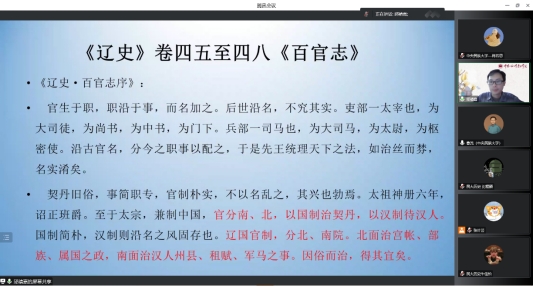 最后,邱靖嘉老师又谈及对辽代官制研究的三点思考与体会:一是要做注重“过程”和“关系”的“‘活’的制度史”,二是要引入贯通唐、五代、辽、宋的制度史研究取径,三是要注意契丹王朝吸纳融汇华夏政治文化的过程路径和发明创新。