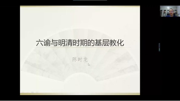 陈时龙老师结束讲演后,彭勇教授进行了线上评议。彭教授表示,陈时龙老师首先阐释了六谕的基本内容,并对六谕在有明一代的流传情况作了介绍。接下来对六谕的各种不同的诠释文本做了详细的文献考订。在这一过程中可以看到,六谕从皇帝颁布,宗室效行,到士人宣传倡导,最后落实到社会基层的实际教化之中,总体上都是通过各种诠释文本实现的,同时也与阳明心学的传播和当时讲学的风气密切相关。从明太祖的《教民榜文》,到六谕进入乡约,再进一步融入族规家训,每一步都离不开士大夫不遗余力的倡扬。这或能说明在国家意识形态的倡导之下,士大夫确实是基层教化的主要倡行者。他们怀揣着治国治世的理想,一代代传承着六谕的精神,所谓“士为风俗之先”是也。彭老师点评道,陈时龙老师的研究视野相当宏大,从金、元时期一直爬梳至晚清近代。研究思路也相当开阔,不仅聚焦于文本的解读与比较,同时广泛地关注到了大量的诗歌、图像、碑刻,拓展了明代基层教化的研究路径。