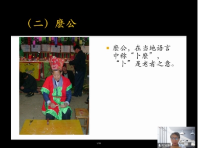 第二部分,不同仪式专家与仪式传统间的权利关系构成一统。当地仪式传统主要为太平清醮。太平清醮是当地酬谢天地、祈福消灾的集体仪式,由道公主持,麽公麽婆辅助。杜老师分析了仪式举行过程中体现了不同仪式专家间的权利关系,如时间节奏、空间位置以及法力授受均以道公为中心。法力授受为盖帽(授戒)仪式是麽公麽婆的成麽仪式,也由道公率领完成。杜老师指出,当地多层的仪式传统中仪式专家道公占有主导地位,并对其他传统形成统合之态,对此参与仪式的各方如道公、麽公、麽婆以及民间传说均保有共识。