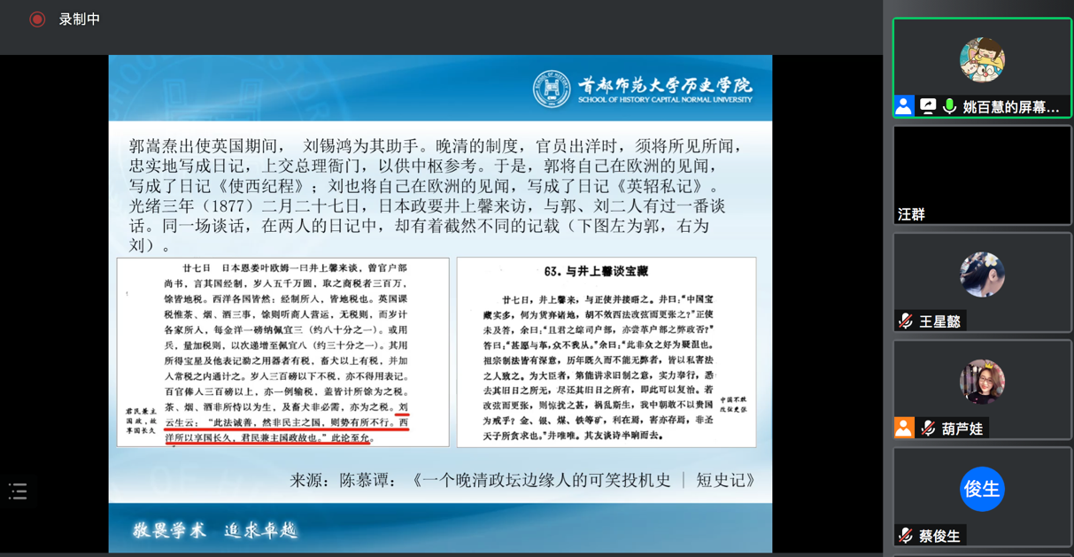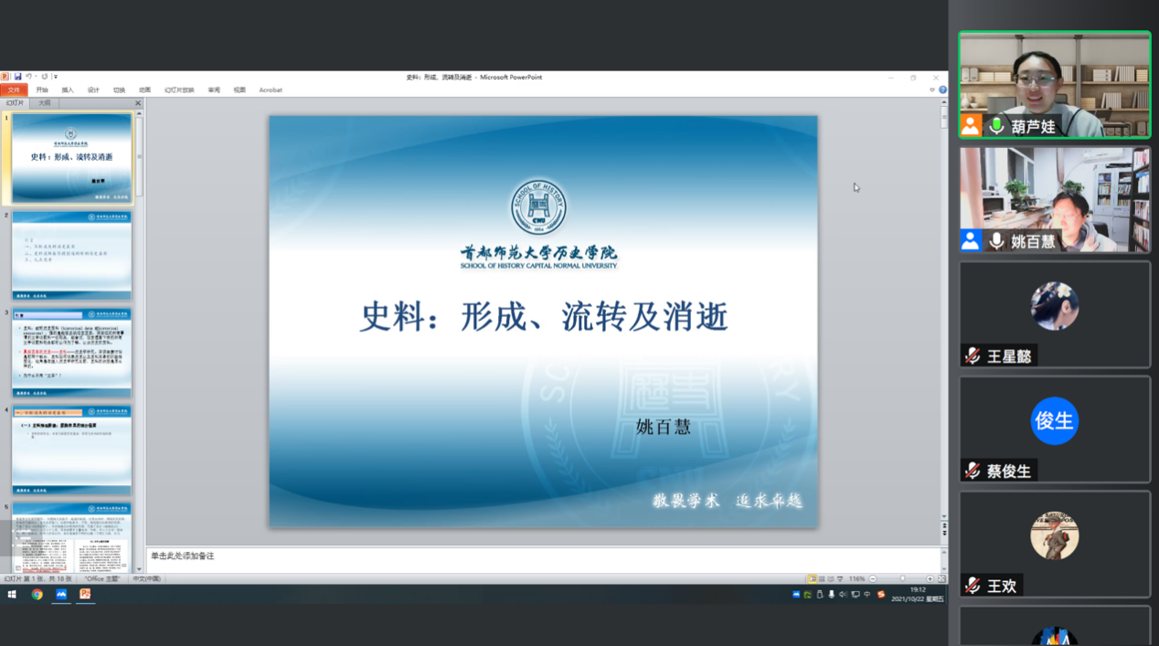 2021年10月22日19时至21时,首都师范大学历史学院副院长姚百慧教授应网络博彩平台