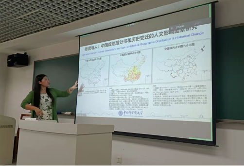 曹老师以“那些湮没在历史中的动物故事”为主题,以自己对新疆虎的研究为例,具体介绍了历史动物研究的研究内容,即“历史时期各自然带及景观中的动物群组成与结构特征”、“不同时期动物类群的地理分布特征及其变迁过程”、“影响动物分布及历史变迁的自然因素与人文因素”、“历史时期动物分布图的绘制与中国历史动物数据库的建设“、”不同时期人类社会对于动物类群的认知与利用“五大研究内容对象。总结了历史动物研究的意义所在:厘清那些对动物的历史误解,解释与协调人与自然的关系命题。