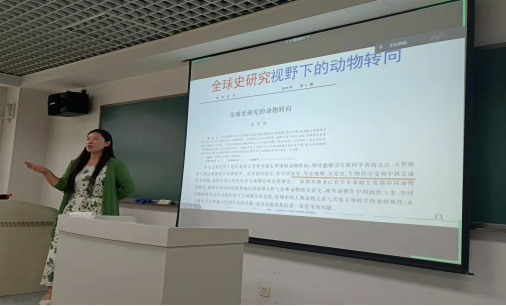 曹老师首先从两个命题入手,即“什么是历史动物研究?”和“历史动物研究的时空可视化”,开始了讲座。曹老师介绍到历史动物研究是对于历史时期动物的研究,介于古动物研究与现代动物研究之间,并从自然科学研究视域,地球进化史视域,人类史视域三个方面简要介绍。随后,曹老师对两种学术体系下的历史动物研究进行讲解,其一是将动物的历史研究放在欧美学术史的脉络中将其分为“自然史”“科技史” “(新)动物史”三个阶段,分别代表着早期现代、现代和后现代史学的三个传统。(陈怀宇.动物史的起源与目标.史学月刊.2019.3);其二是全球史研究视野下的动物转向,曹老师介绍了中山大学沈宇斌老师的研究成果(沈宇斌.全球史研究的动物转向.史学月刊。2019.3),点明了近年来动物史研究中全球史转向的大趋势。
