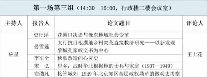学院中国近现代史教研室安劭凡老师向会议提交报告的论文题目为《接管城郊:1949年北京郊区基层政权鼎革的微观史考察》,文章指出,中共在农村革命与城市接管的中间地带,即如何掌控城郊地区,长期以来是相关研究所忽视的面向。依靠1949年前后燕京大学社会系学生进行的若干社会调查,我们得以了解中共在1949年和平解放北平的同时是如何接管城市郊区的。通过对一个具体的个案——树村的微观史考察,尤其是代表中共的两名工作组同志的到来所引发的一系列乡村政治生活的变动的梳理,不难发现,中共的城郊接管工作相较于城市接管而言是十分薄弱的。但同等重要的是,虽然中共新政权对旧保甲人员的大量留用体现了1949年延续性的一面,从基层日常政治生活角度而言,新政权的建立却无疑仍标志着具有分水岭意味的1949的巨大断裂性。