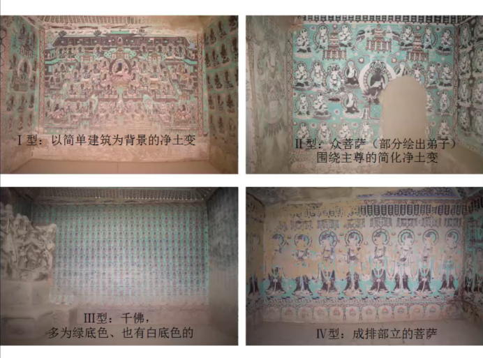 讲座伊始,赵老师以绿壁画的归属为切口,阐释其含义,即10世纪末至11世纪出现的一系列严重程式化壁画的直观概称,因其中出现以绿色为底色的大面积千佛或净土而成为这类壁画的代称,并对此类壁画的风格进行了简要分析,进而探讨了绿壁画西夏说的源流。回顾了学界争论与洞窟个案研究之后,她指出绿壁画最早出现于归义军曹元忠末期或其离世后不久,延续至沙州回鹘时期。净土的特征在绘画题材上得以充分体现,似乎反映了周边环境不稳的态势。